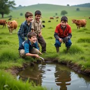 Ngày ngày, con chăn bò, nô đùa cùng bạn bè, tắm mương, bắt cá…