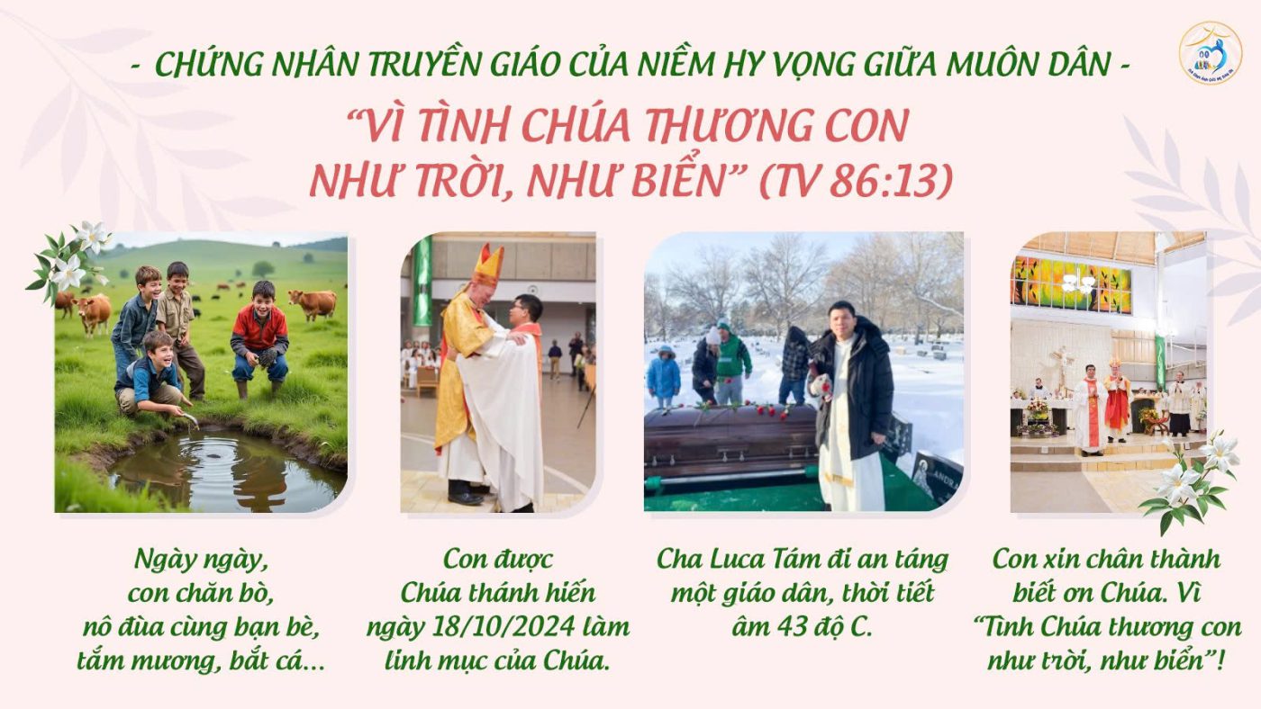 Sau bảy năm tu học, ngày con được Chúa thánh hiến 18/10/2024 làm linh mục của Chúa lại trùng đúng ngày con trở về từ Hồng Kông và Ma Cao, cách đây 11 năm, khi con đã từng nghĩ mình không có ơn gọi tu trì. Con đường Chúa dẫn dắt thật kỳ diệu. Nhiều lần con tưởng mình có thể tự quyết định cho cuộc đời, nhưng rồi Ngài nhẹ nhàng cho con thấy chính Ngài mới là Chủ của thời gian, không gian và đời sống con. Hiểu được sự quan phòng nhiệm mầu của Chúa, con bước đi bình an. Chính nhờ trải nghiệm hồng ân của Ngài suốt chặng đường đã qua, con mới dám cất lên câu kinh: “Vì tình Chúa thương con như trời như biển” (Tv 86:13).