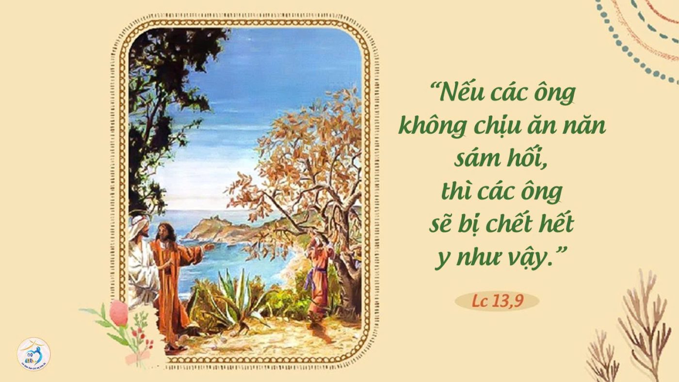 Chính vì thế, khi người ta kể cho Chúa Giêsu chuyện mấy người Galilê bị Philatô giết (c.1), Chúa Giêsu đã nhắc nhở họ biết nhìn lại chính mình và ăn năn hối cải để được cứu độ. Thiên Chúa vẫn kiên nhẫn chờ đợi và mong muốn chúng ta hoán cải trở về với Ngài dù ta có tội lỗi đến đâu đi nữa. Người còn nhắc họ về sự cố “mười tám người bị tháp Silôe đổ xuống đè chết” (c.4), để nhấn mạnh thêm với họ: đừng xét đoán người khác để tìm nguyên nhân, nhưng hãy mau hoán cải để không bị chặt đi (c.9).