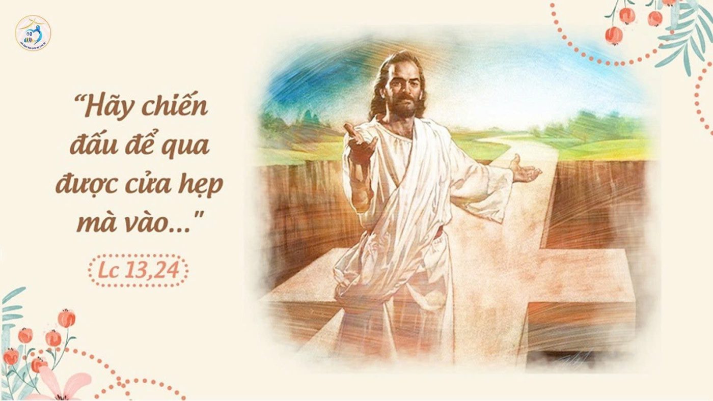 Con người được tạo dựng theo hình ảnh Thiên Chúa, nên tận ai cũng khát khao hạnh phúc, chân – thiện – mỹ. Những điều ấy chỉ được thỏa mãn trọn vẹn khi con người được hiệp thông với Thiên Chúa, được hưởng tình yêu và hạnh phúc viên mãn trong Nước Trời. Tuy nhiên, vì ảnh hưởng của tội lỗi, con người thường bị mê hoặc bởi những cái đẹp giả trá, hạnh phúc ảo. Con đường dẫn đến hạnh phúc thật luôn đòi ta phải hy sinh. Chúa Giêsu gọi đó là con đường hẹp, cửa hẹp, và Người mời gọi chúng ta: “hãy chiến đấu để qua được cửa hẹp mà vào” Nước Thiên Chúa.
