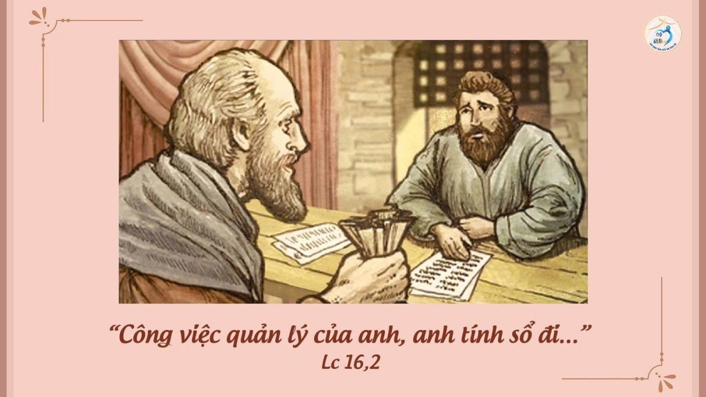 Chúa Giêsu kể dụ ngôn người quản gia bất lương bị chủ cho thôi việc. May thay, anh này đã kịp thời hiểu rằng: tình nghĩa thì bền hơn tiền bạc. Anh ta đã nhìn nhận rất thật về chính mình, rằng mình không thể làm được việc gì khác, nên anh tranh thủ giảm nợ cho các con nợ của chủ. Đó có thể là khoản tiền lãi quá đắt của chủ đã bất công với con nợ, hoặc cũng có thể là khoản huê hồng anh có quyền được hưởng trong chức vụ của mình. Dù sao, được giảm đi một khoản nợ như thế con nợ nào cũng mừng rỡ và biết ơn anh ta. Việc tận dụng quyền quản lý và thời gian còn lại trong chức vụ để giúp ích cho người khác của anh chính là một sự khôn ngoan, mà Chúa Giêsu gọi là “hành động khôn khéo” (c.8).