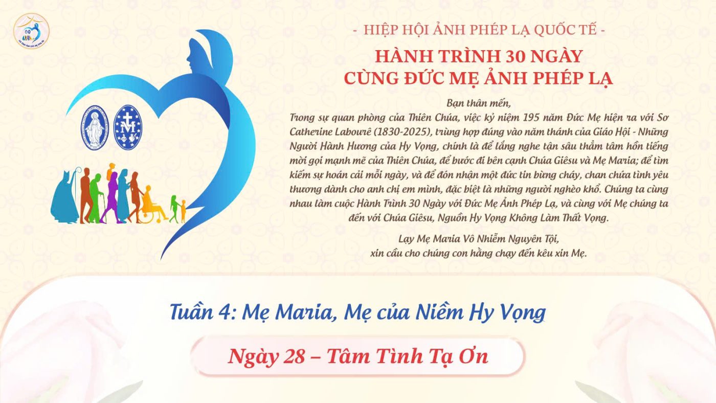 HÀNH TRÌNH 30 NGÀY CÙNG ĐỨC MẸ ẢNH PHÉP LẠ – NGÀY 28 TÂM TÌNH TẠ ƠN