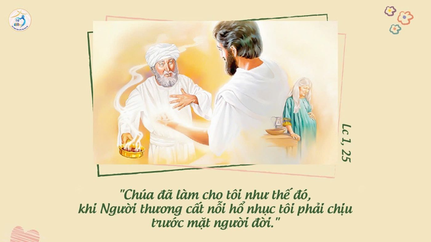 Trái lại, bà Êlisabét vợ ông, khi biết mình có thai, đã kín đáo “ẩn mình năm tháng” (c.24). Trong sự thinh lặng ấy, bà khiêm tốn tạ ơn Chúa và cảm nếm niềm vui sâu xa được Chúa “đoái thương cất nỗi hổ nhục tôi phải chịu trước mặt người đời.” (cc.24-25).