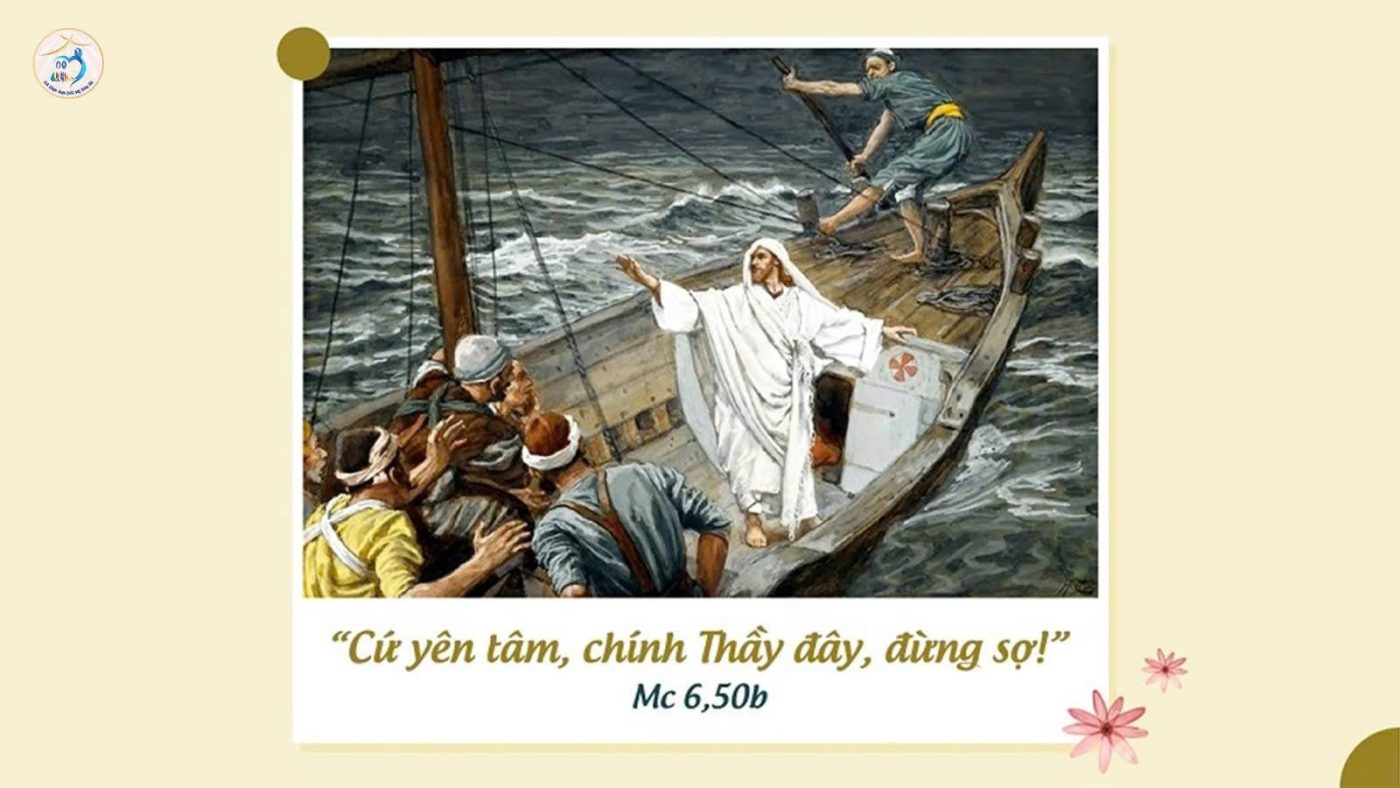 Sợ hãi nảy sinh khi thiếu vắng hoặc ta nghi ngờ tình yêu; bình an đến khi ta xác tín rằng mình đang được yêu thương. Chỉ đến khi nghe tiếng Chúa trấn an: “Cứ yên tâm, chính Thầy đây, đừng sợ!” (c.50), lòng các ông mới bình tĩnh trở lại. Chính khi các môn đệ xác tín Thầy đang ở đây và tin vào tình yêu của Thầy, nỗi sợ hãi liền tan biến, dường như cơn bão trên biển không còn nữa. Sau này, thánh Gioan Tông đồ, một trong số những người ở trên thuyền đêm đó đã nhận định: “Tình yêu không biết đến sợ hãi; trái lại, tình yêu hoàn hảo loại trừ sợ hãi.”[1]