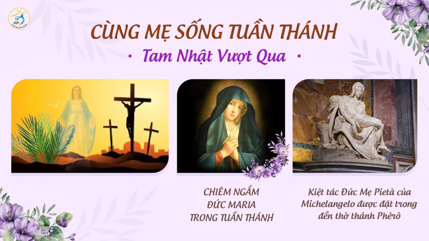 Hơn ai hết, Đức Maria luôn kết hiệp mật thiết với Chúa Giêsu từ khi Người mới là bào thai trong cung lòng Mẹ. Rồi suốt 30 năm ẩn dật và 3 năm rao giảng công khai của Chúa Giêsu, Mẹ vân luôn hiệp hành với Con. Vậy Mẹ sống Tuần Thánh như thế nào?